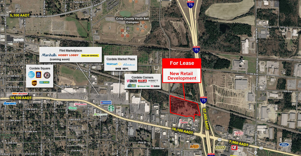 Prime retail development site, located directly behind Chick-fil-A and Hampton Inn in one of Cordele's fastest growing commercial corridors. With excellent visibility from Highway 280 and immediate proximity to Interstate 75, the property benefits from strong daily traffic counts and a steady flow from both local residents and interstate travelers. Surrounded by a dense cluster of national retailers and hotels, this site is ideally positioned to capitalize on continued retail expansion and consumer demand in the area.